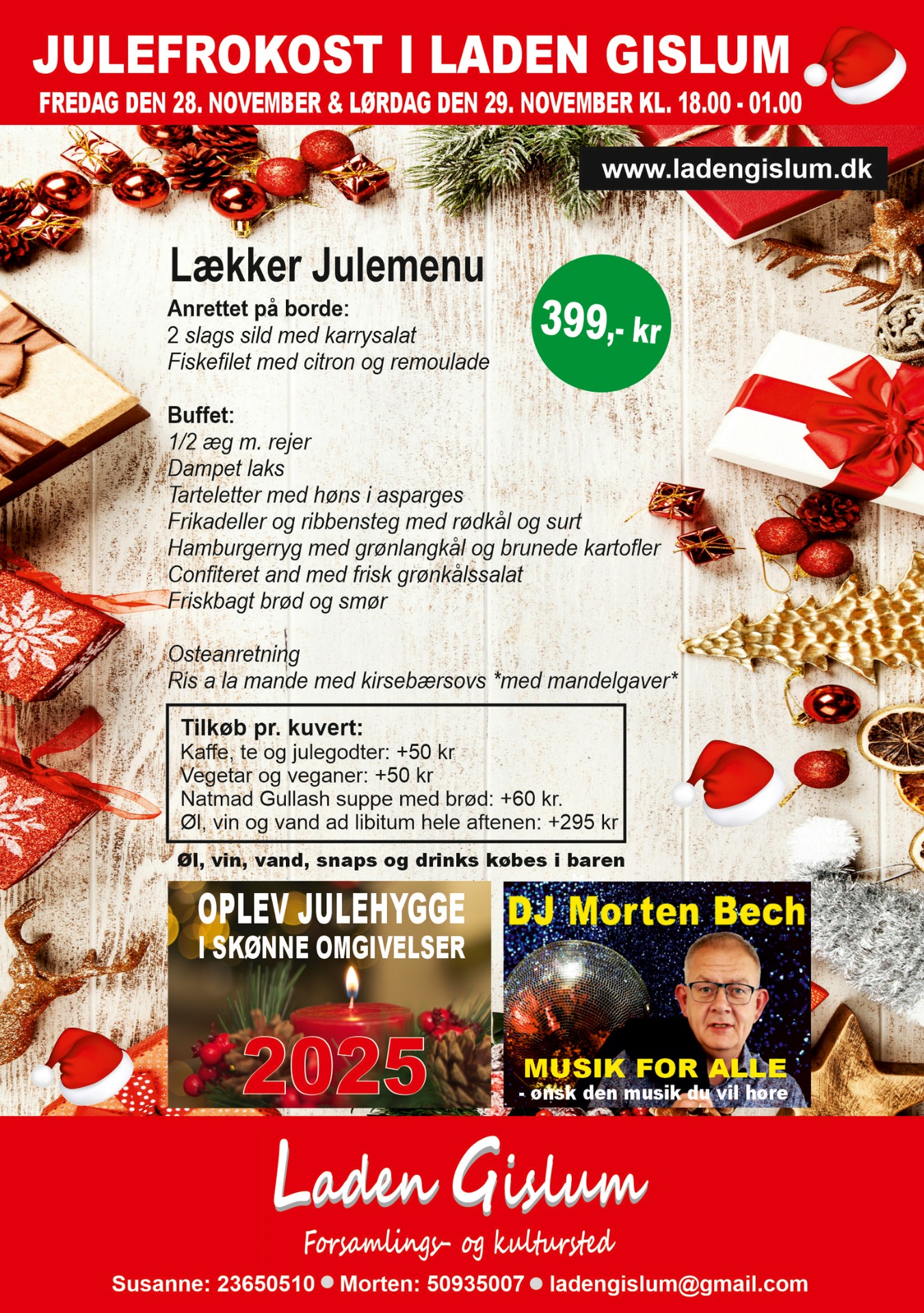 Laden Gislum holder julefrokost fredag den 28. november og lørdag den 29. november i år.
